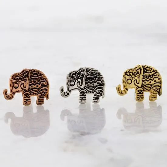 Channel strength, wisdom, and a touch of wanderlust with this beautifully detailed Bindi Elephant barbell. Perfect for tragus, helix, or lobe piercings, this piece blends boho charm with modern shine. Available in silver (high polish), gold, or rose gold, it’s versatile enough to wear solo or stack with your favorite studs and hoops for a statement look.