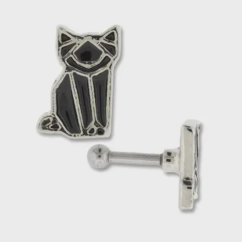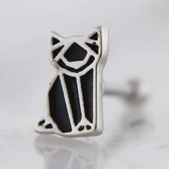 Black cats arenāt bad luckātheyāre pure magic. This sleek geometric cat tragus/helix barbell, filled with deep black epoxy, is perfect for anyone who loves feline vibes, witchy aesthetics, and year-round Halloween energy. Subtle yet striking, itās the ideal way to show off your cat love while adding a little mysterious edge to your ear stack.