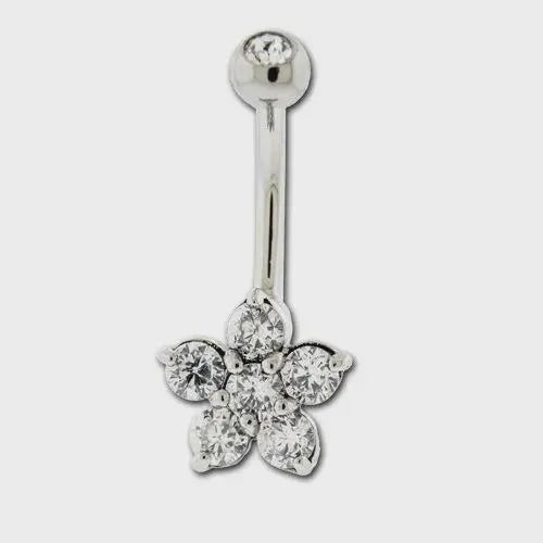 Delicate, dazzling, and timeless—this 14G flower belly ring brings effortless sparkle to your style. With six brilliant clear gems forming a radiant bloom, this piece is perfect for anyone who loves a little elegance in their everyday look. Whether you’re dressing up for a night out or keeping it casual, this belly ring adds just the right amount of shine.