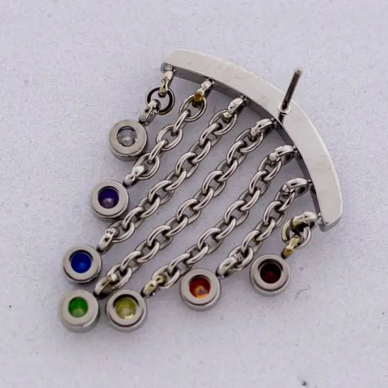 Titanium Threadless End - Hidden helix chains w/ rainbow cz dangle